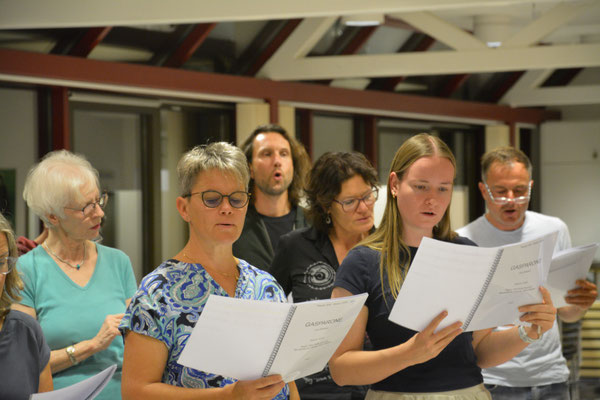 Unter der Leitung von Jonathan Prelicz und Ester Rickenbach wird im Chor bereits intensiv gearbeitet. Mit voller Energie, konzentriertem Einsatz und grosser musikalischer Leidenschaft tauchen die Sängerinnen und Sänger in die Klangwelt von Gasparone ein. Ton für Ton entsteht ein harmonisches Miteinander, das später auf der Bühne für unvergessliche Momente sorgen wird. Zwischen den Takten ist aber auch Raum für Austausch, Lachen und gegenseitige Unterstützung, denn nur gemeinsam entsteht dieses besondere Ensemblegefühl, das ein Publikum wirklich berührt.